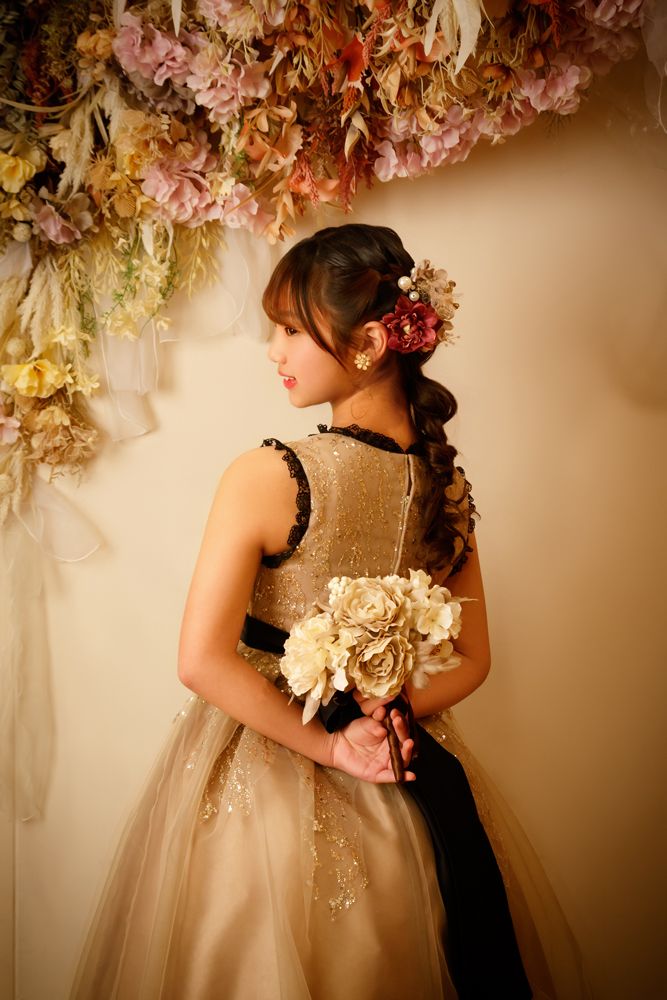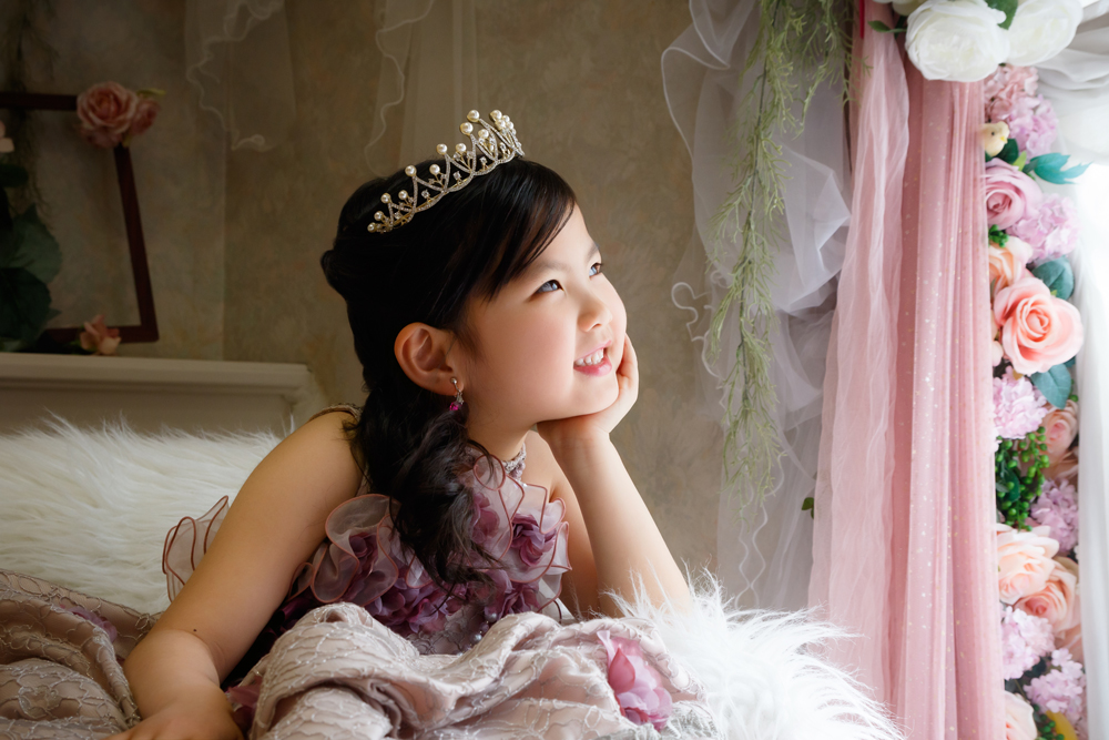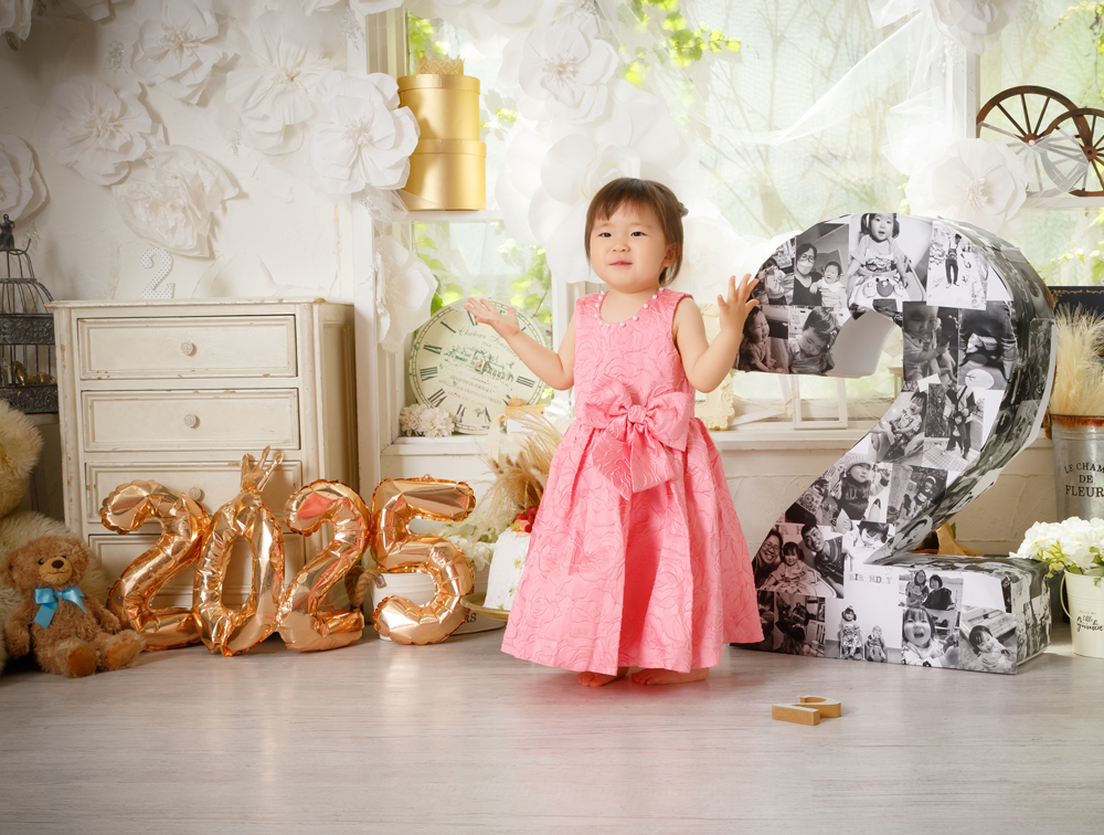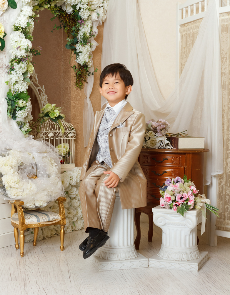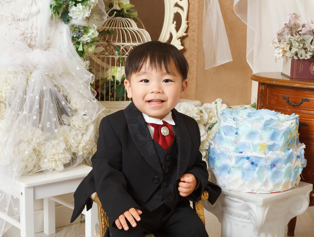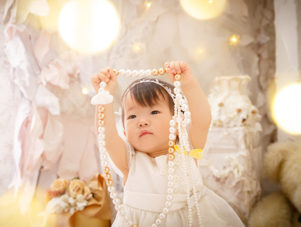 話しかけながら自然な表情を引き出します。小物も使ってたくさんのカットをポーズや撮影します。